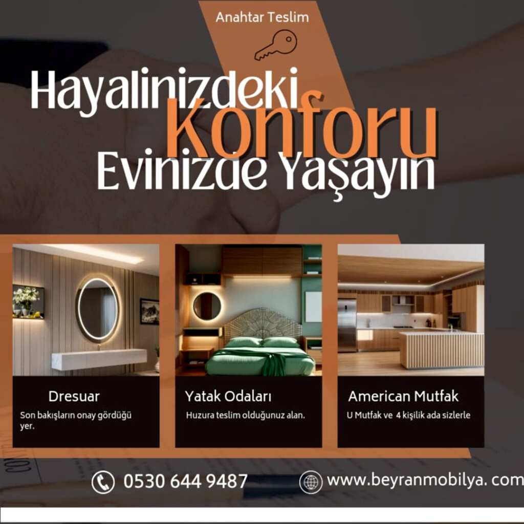 Beyran Mobilya, iç mobilya dekorasyonunda sürekli gelişen tasarım anlayışıyla, her sezon yenilikçi ve modern ürünler sunuyor. Kullanıcıların ihtiyaçlarına göre özelleştirilebilen iç mobilyalar, her bireye özel çözümler oluşturur. İster modern ister klasik tarzda, her zevke hitap eden renk seçenekleri, malzeme dokuları ve fonksiyonel tasarımlar ile iç mekanınızı kişiselleştirmeniz mümkündür.